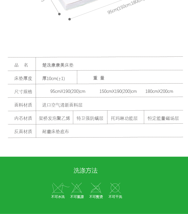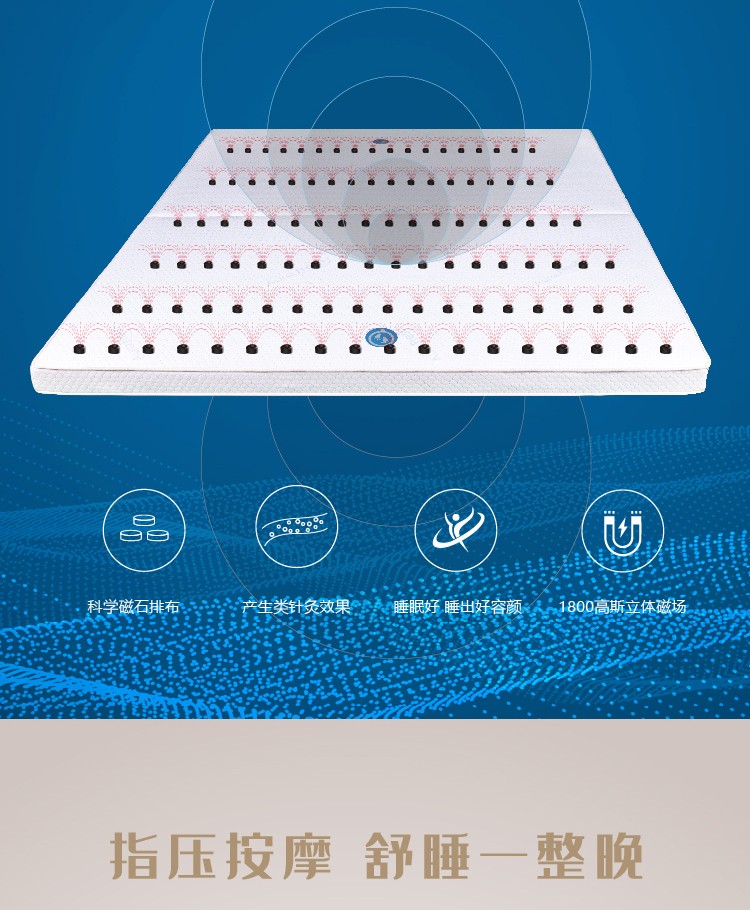 内芯材质:远红外功能层、恒定能量磁场层、进口环保架桥按摩层、抗菌防螨功能层