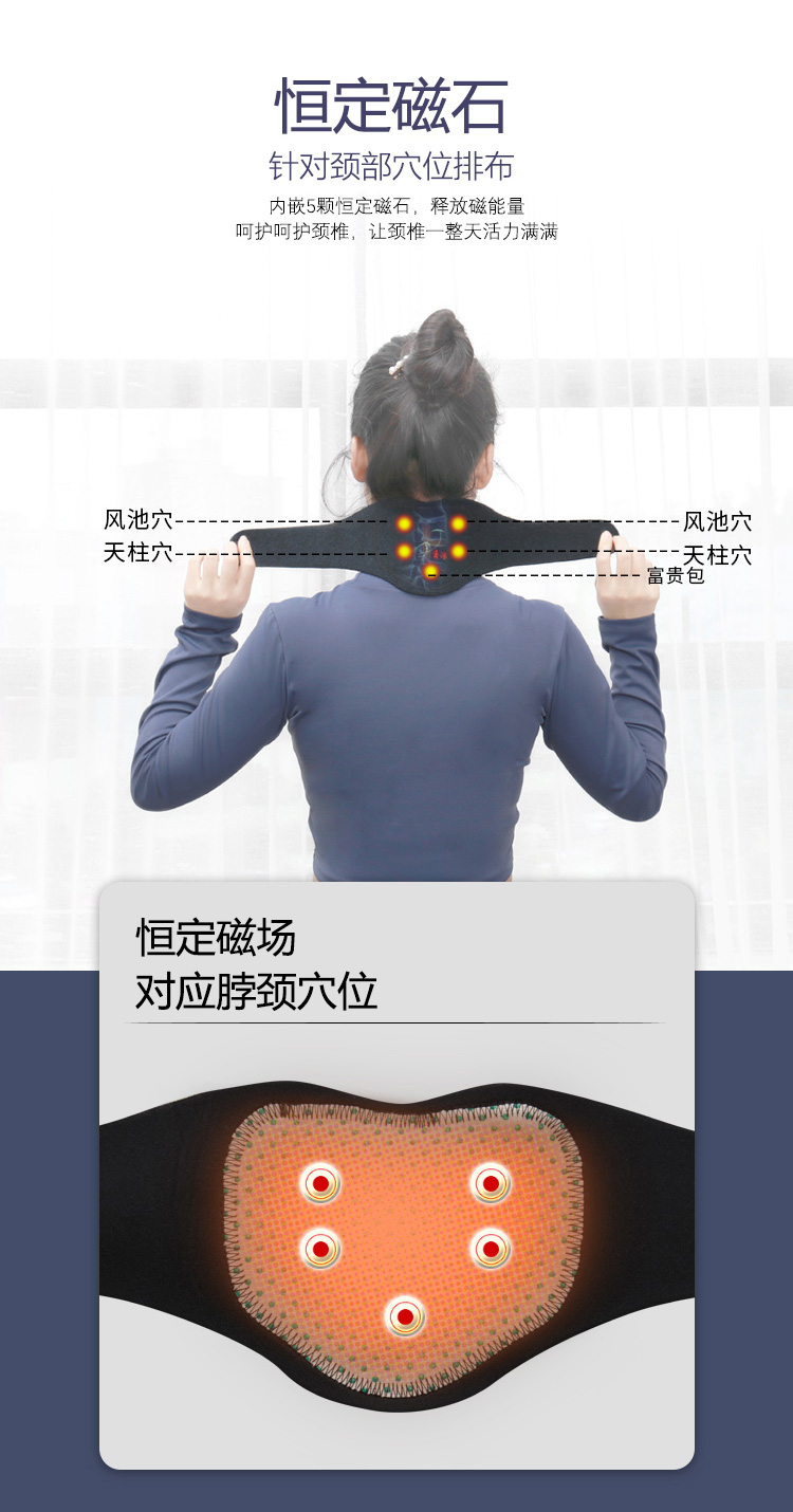 描述:内嵌5颗恒定磁石,以天然矿物质电气石为核心,可释放远红外、负离子能量,锁温速热,健康的热敷,不朽情缘官方网站给颈椎暖暖的呵护